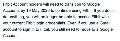 I mean, when google bought fitbit they already had you under their control. You were already part of their ecosystem and using a fitbit account didn’t mean anything really for your privacy. Now this feels more like an organizational cleanup. Trying to get rid slowly of the brand and make it more google centric, maybe force people to tie their data into their old google accounts to remove user duplication but really, the watches were already connected to phones with you google account most likely.