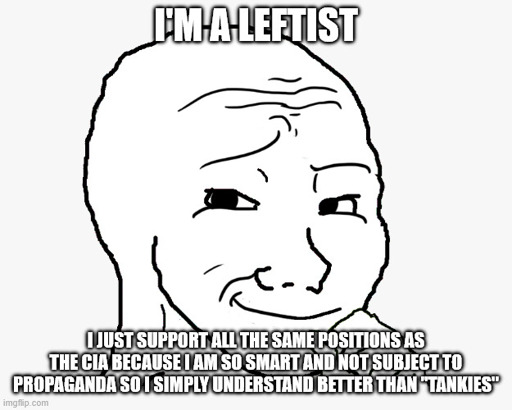 minus-square☆ Yσɠƚԋσʂ ☆@lemmy.mllinkfedilinkarrow-up8arrow-down1·15 hours agoPlenty of anarchists have the exact same position as the US regime when it comes to western adversaries like China.