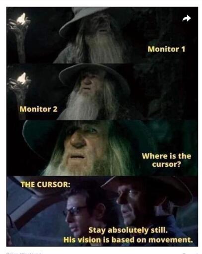 Gotta wiggle more aggressively. If you wiggle right for like 10 seconds it’ll be the size of your whole monitor. Hard to miss at that point