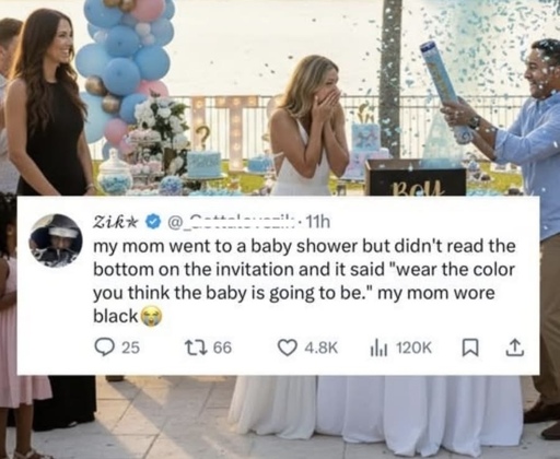 The dummy putting together the original post obviously realised if the instruction was “wear pink or blue to show what sex you think the baby will be”, it would’ve gotten in the way of their faintly racist boomer joke.
