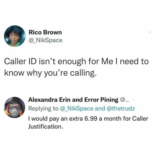 minus-squareCantaloupe@lemmy.fedioasis.cclinkfedilinkarrow-up4arrow-down1·12 hours agoI need you to not fucking call me period. I hate random phone calls.