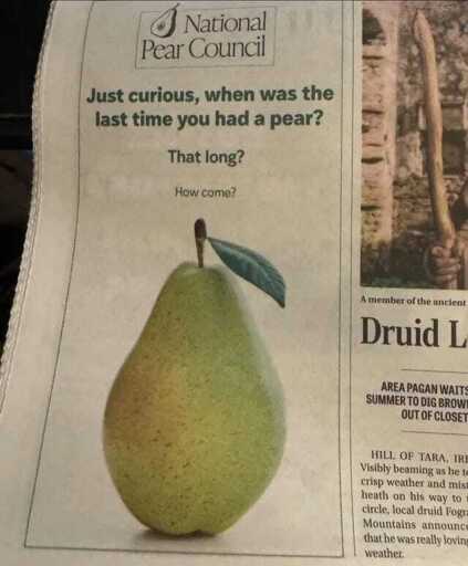 minus-squarehperrin@lemmy.calinkfedilinkEnglisharrow-up13·2 days agoPlease, bro! Pears are so good! Don’t you remember how it tasted? No? Maybe if you try harder? Still no? Ok, well trust us, it’s definitely memorable.