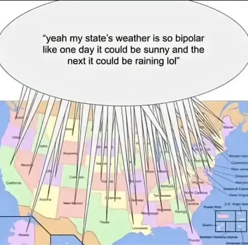 Missouri here. Most of this area is valid in making the weather statement. Because we’re right where weather fronts like to meet up at to fight, we will literally get times when the high is 35f one day and then 70f the next. I think last year we had a day that went from 78f to 19f over the course of like half a day.