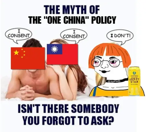 If you assume the flags stand for official government positions, then this meme makes sense. This is further supported by the fact that normal people don’t think in terms of “one China policy” (like the post’s title implies) but rather in terms of “unification”, as you wrote.