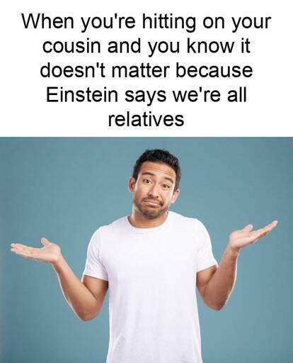 dude all of us unclear on the concept of second cousin. like, we were digging through my family history and found out one of my great something grandfathers married his fifth? cousin. like, they didn’t even find out until the wedding and the grandparents were “meeting” and were like “aren’t we second cousins or something” but in a town of 5,000 your picks are limited.