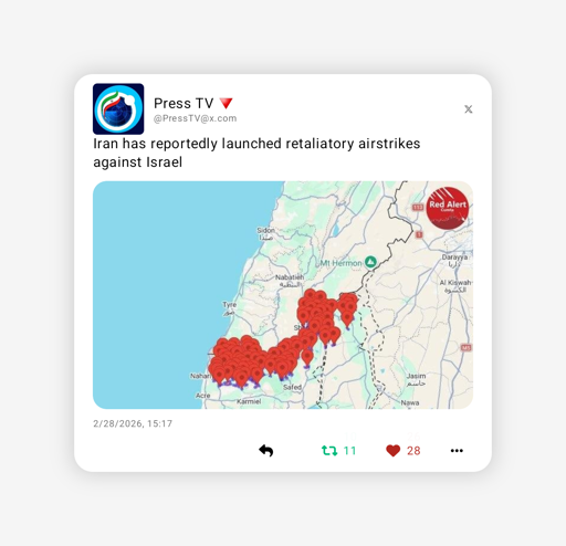 arrow-up1244arrow-down1imageIran has reportedly launched retaliatory strikes against Israellemmy.mlA🔻atar of 🔻engeance@lemmy.ml to World News@lemmy.mlEnglish · 3 days agomessage-square202fedilinkfile-text