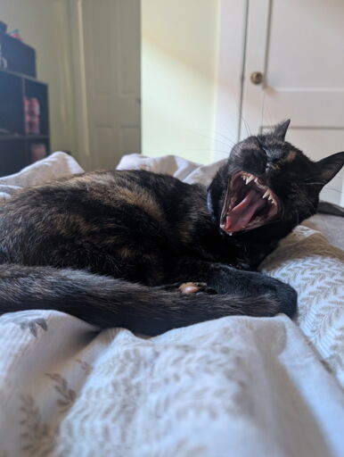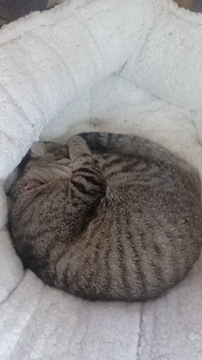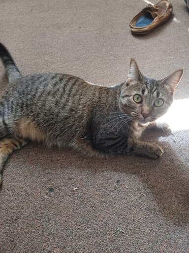 She’s really such a sweet girl. Tabbies tend to look angrier than they actually are since they have their permanent angry eyebrows. She’s back to her normal self, climbing on my shoulders and cuddling up whenever i sit down to read or watch tv