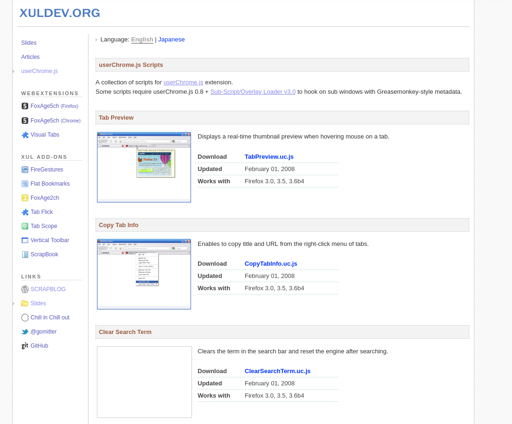 cm0002@ttrpg.network to Firefox@fedia.io · 1 month agoFound this very old site for finding userChrome.js (in-browser) scriptsplus-squarelemmy.mlimagemessage-square0fedilinkarrow-up19arrow-down10